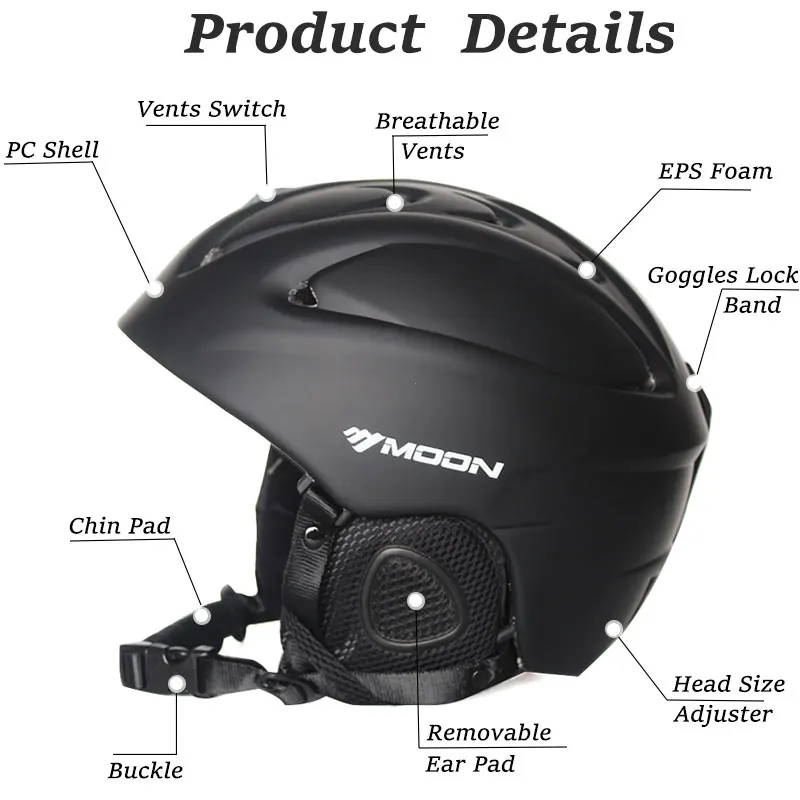 MOON Skiing Snowboard Helmet High Quality Pro Skateboard Equipment Winter adult Helmet Men Women Ul