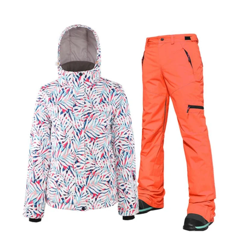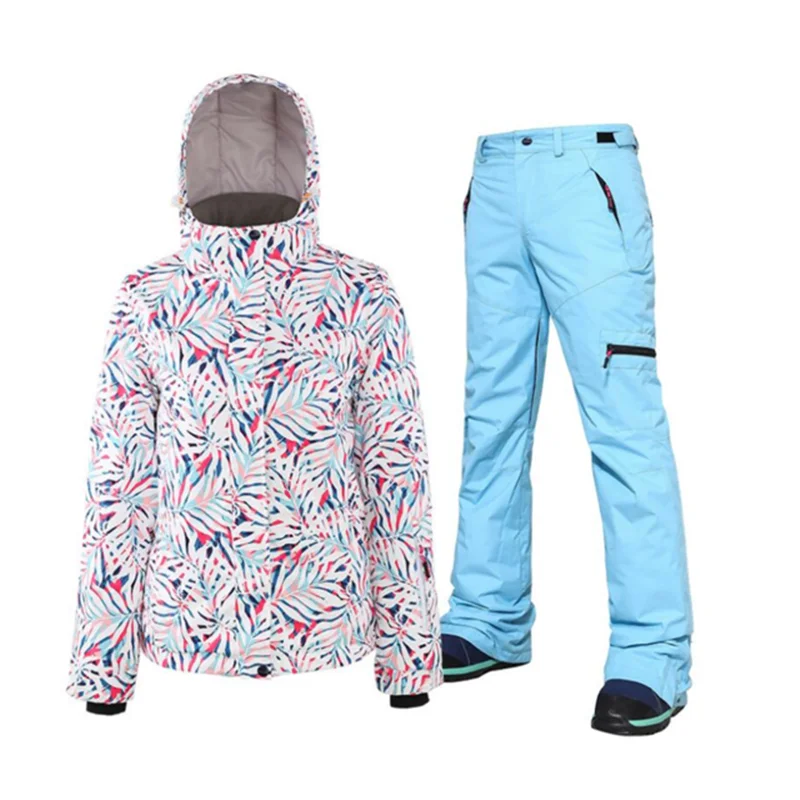 HOT Sale Winter Warm Women's Ski Jacket Overalls Hooded Sport Snow Suits for Woman Windproof Snowboarding Fe
