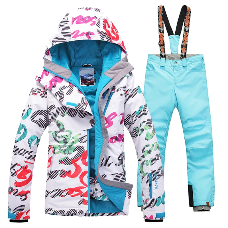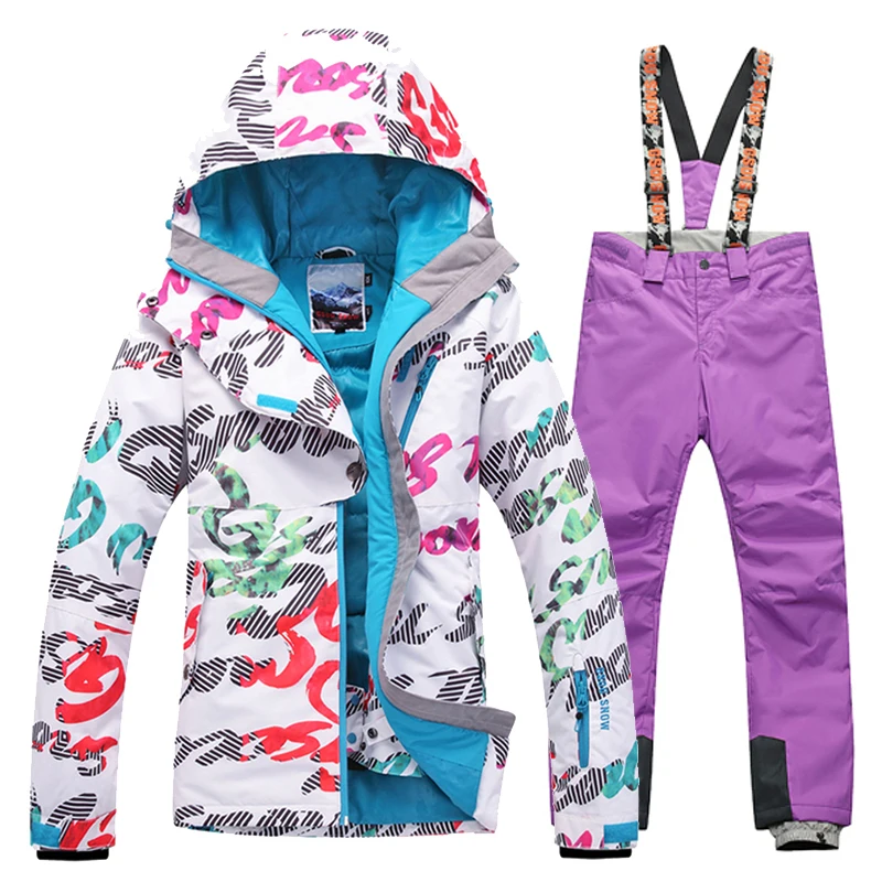 Gsou Snow Women Skiing Suit Waterproof Jacket and Pants Snowboarding Sets Winproof Breathable Profe