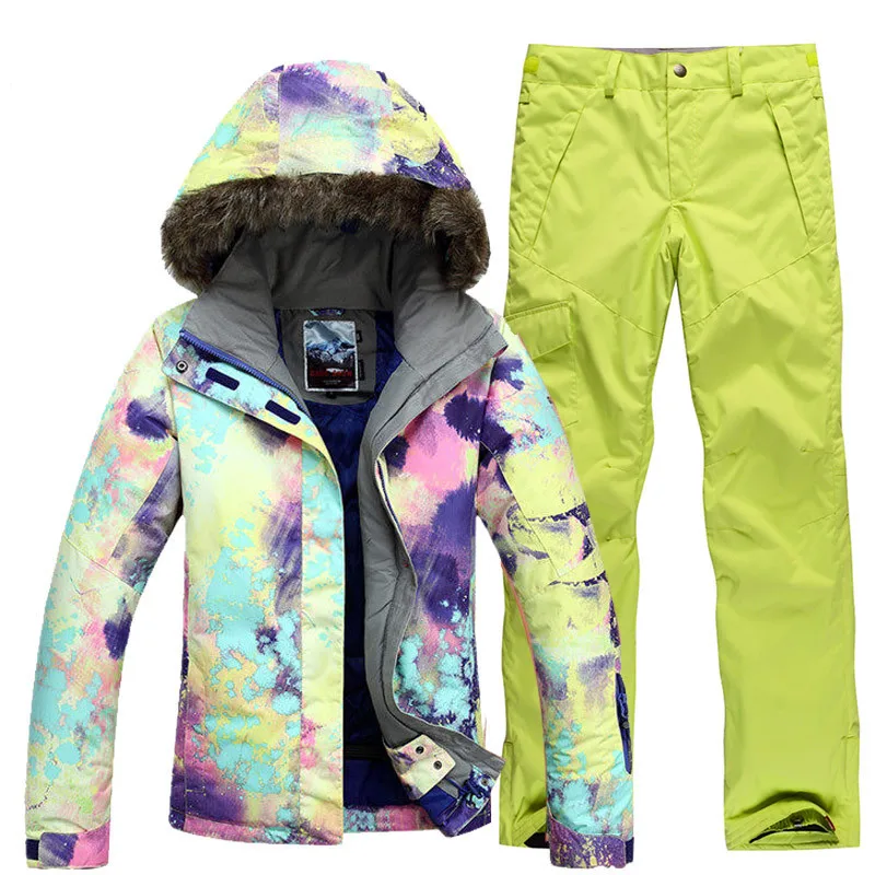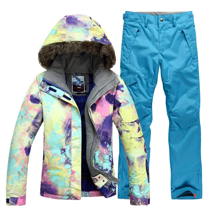 prints Outdoor Sport Women Super Warm Ski Suit Camping Riding Skiing Snowboard Suit Set Jacket+Pant