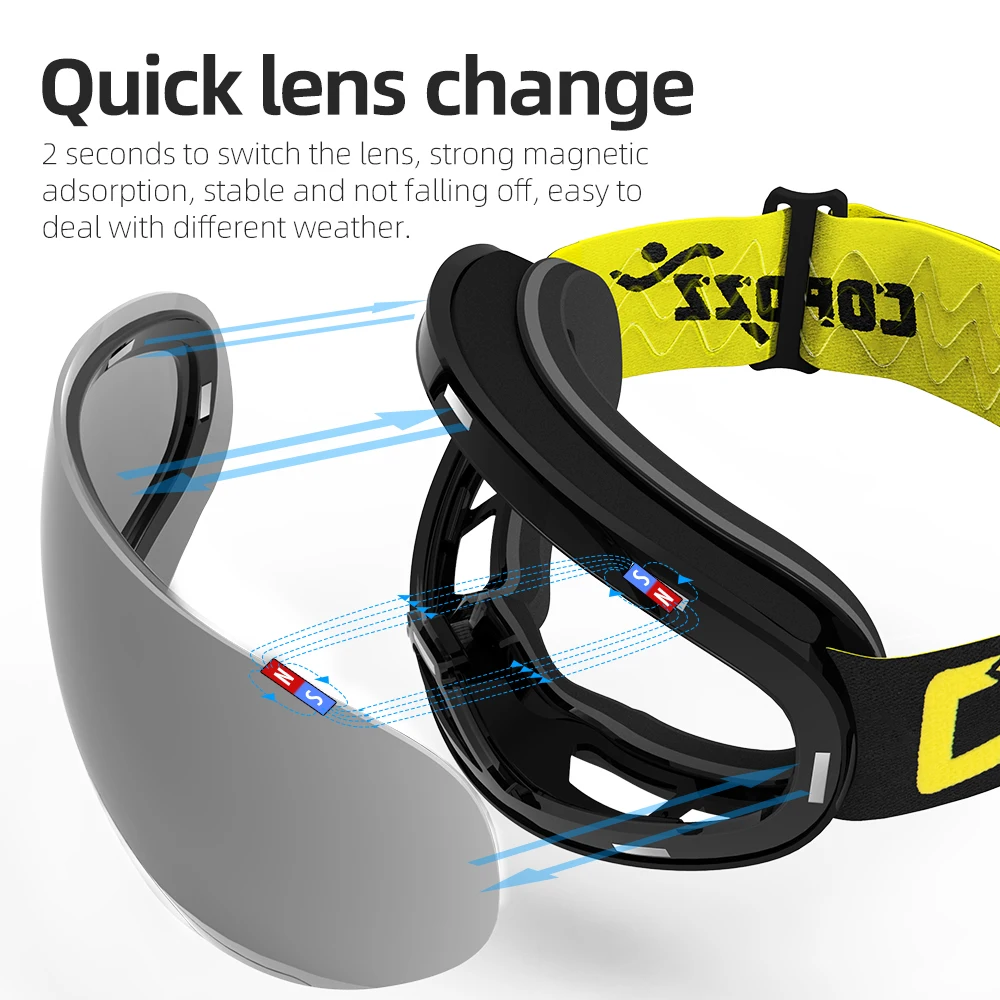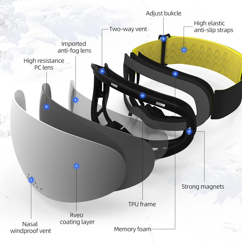 HD Version Magnetic Snow Ski Goggles with Nasal Windproof Double Layers UV400 Anti-fog Snowboard Sk