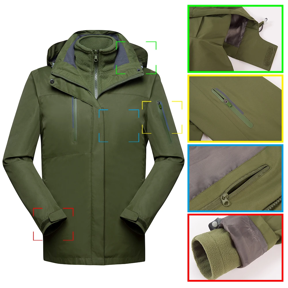 Men Waterproof Jackets New Winter Skiing Snowboard Hooded Shirts 2 in 1 Warm Camping Hiking Jerseys